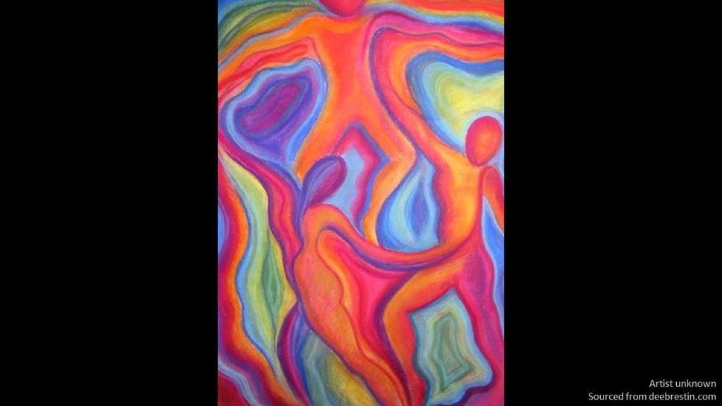 Understanding again comes over you like a wave. Creation is patterned in relationships. With each other, with God, with ourselves. You can’t understand yourself separate from God or separate from other people. The Holy Spirit winks at you, and you realize your body knows this new step, which maybe wasn’t new at all, and you find yourself smiling in welcome, inviting, as partners change again, building the root system.