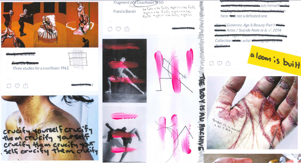 wounds + furies + healing + weaving + masculinity + crosses + flowers
